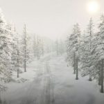 – Custom landscape of deep snow and snow-covered road with custom particles.