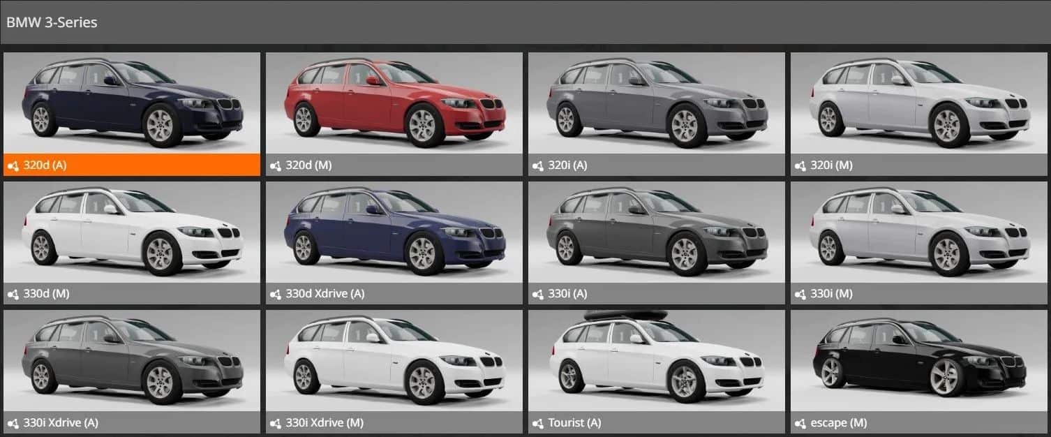 BMW 3-Series E91 Fix 0.32.x BeamNG Mods | 6 Sep, 2024 BMW 3-Series E91 Fix 0.32.x 12 configurations. Fixed the texture on the glass fixed the textures. Fixed the number numbers. Fixed Automatic gearbox. Author: - This content was uploaded by website visitors. If you notice any mistake, please let us know.