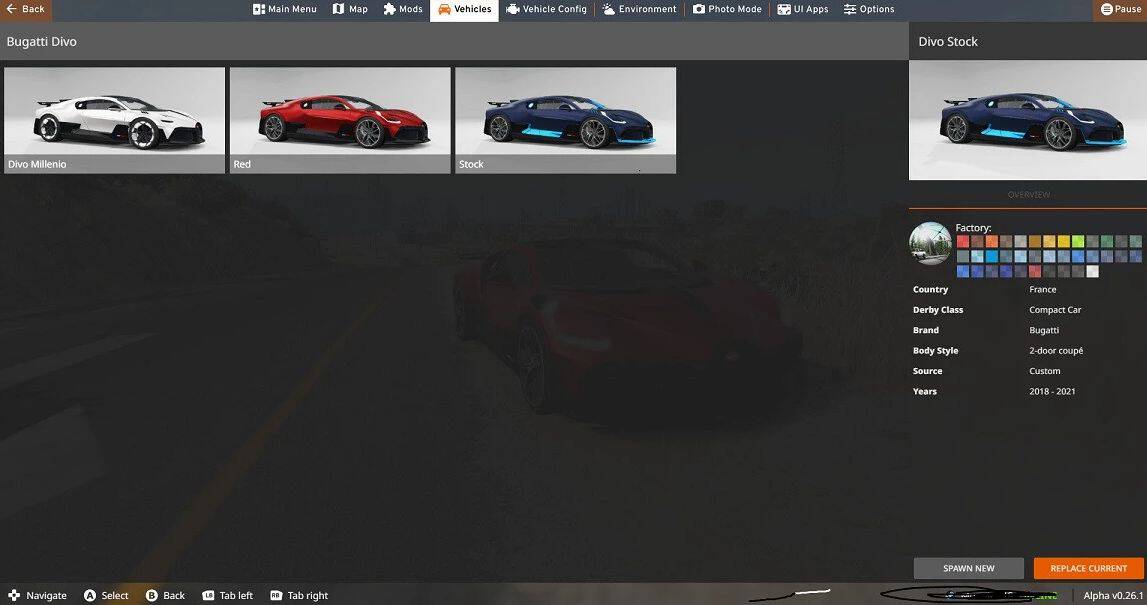 BUGATTI DIVO V2.0 BeamNG Mods | 28 Sep, 2024 BUGATTI DIVO V2.0 BUGATTI DIVO V2.0 car mod for BeamNG.drive: – Bugatti Divo sports car with a good model; – Three configurations; – Good interior; – Normal physics. What’s in version 2.0: – Update for 0.27; – 1 new config (three in total). Author: Cheekqo This content was uploaded by website visitors. If you notice any mistake, please let us know.