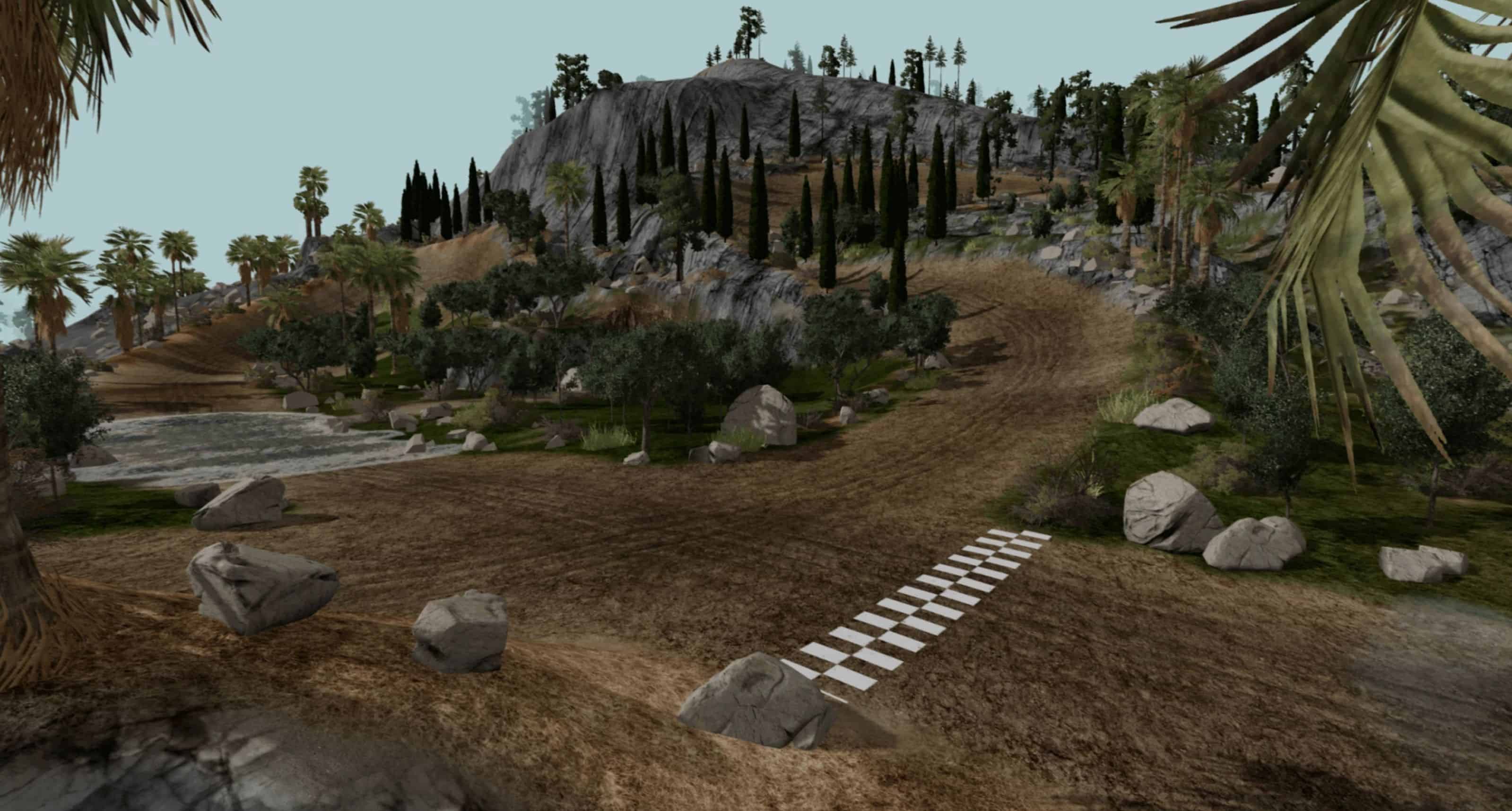 A large playground packed with dirt, mud, and asphalt courses, jumps, loops, carkour, and more. Nearly every jump has a landing that can be done without harming the vehicle, and nearly every lap course has a Joker lap. There is plenty of exploration and challenge for hours of entertainment, and almost entirely AI supported for traffic, races, and more.