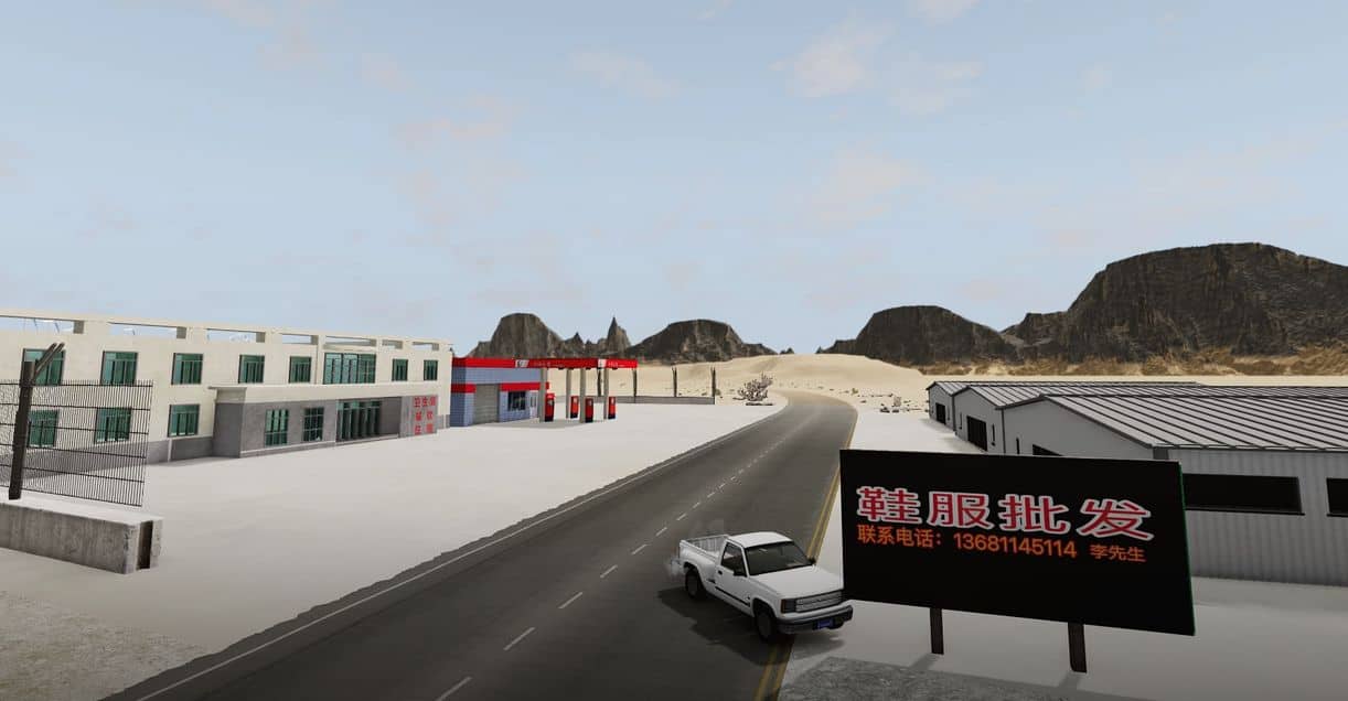 This map mod includes a national highway and several Chinese buildings.
