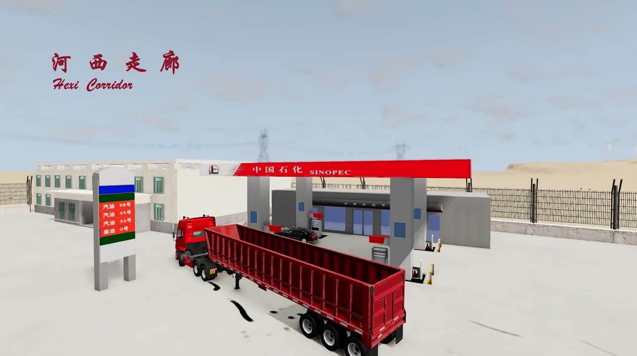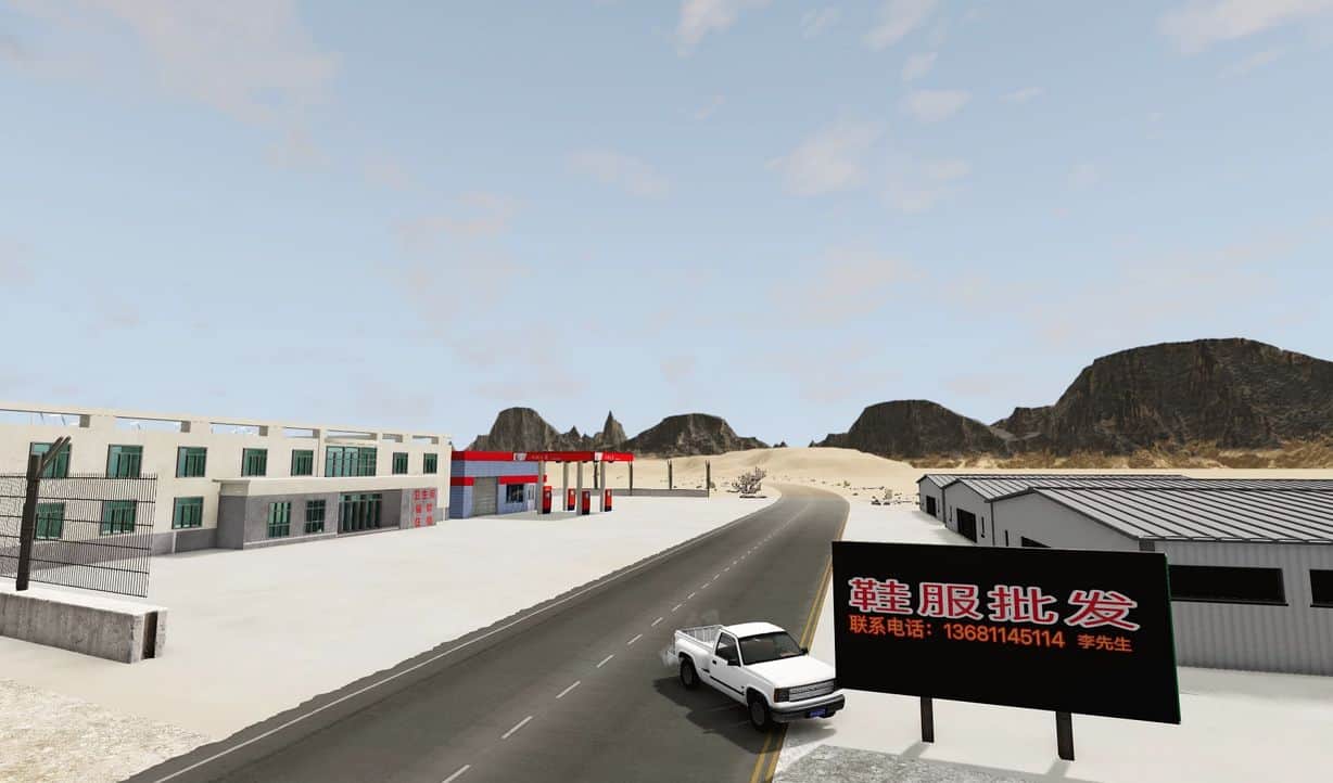 This map mod includes a national highway and several Chinese buildings.