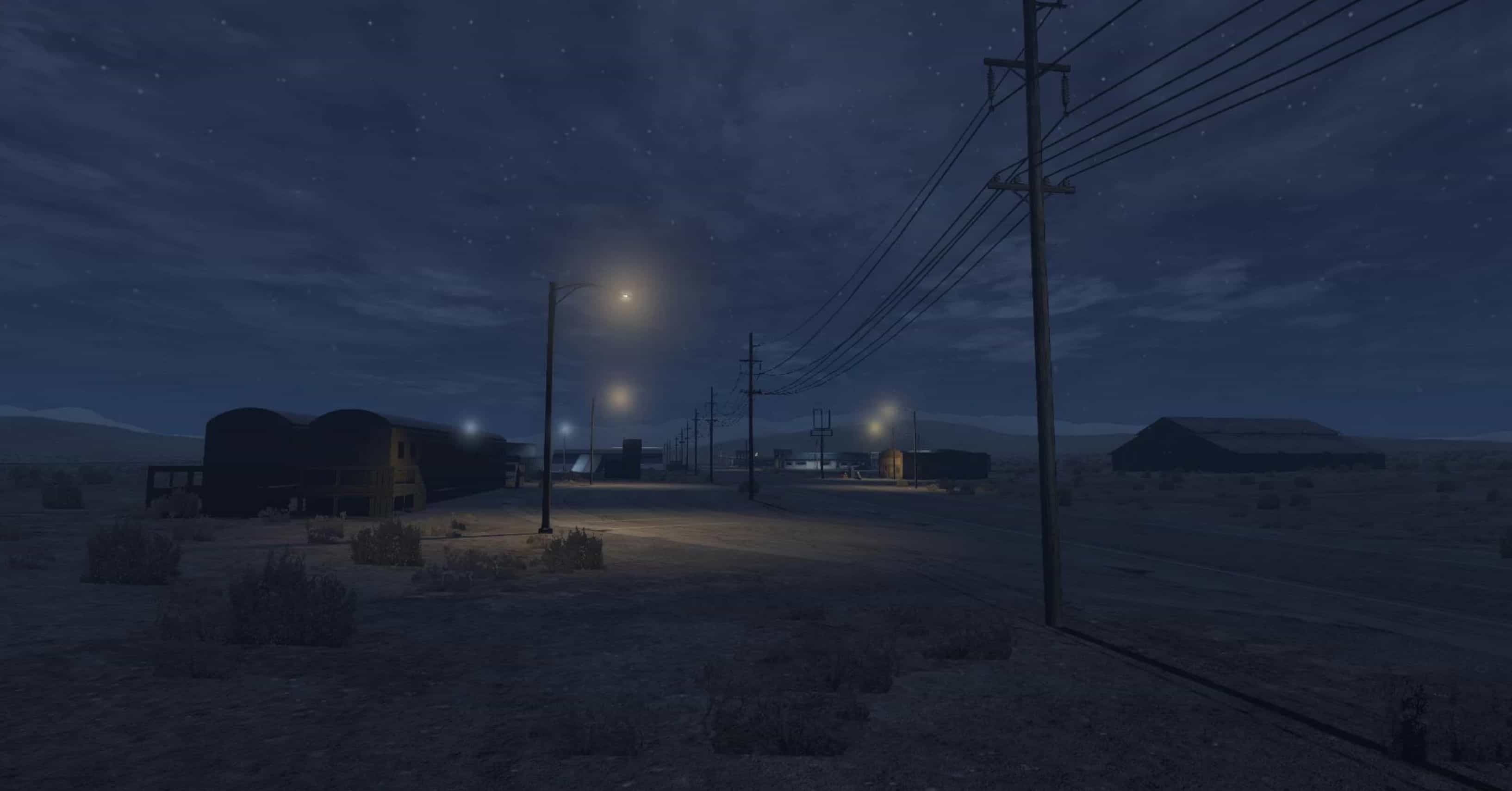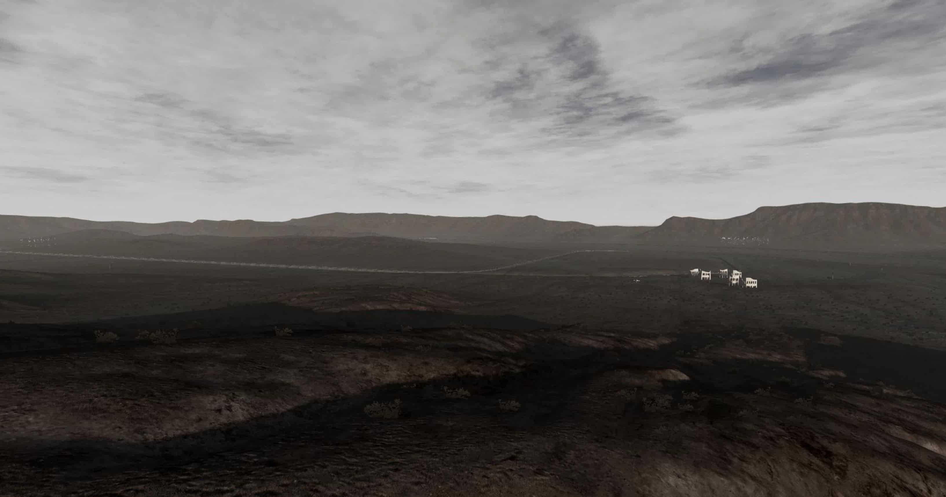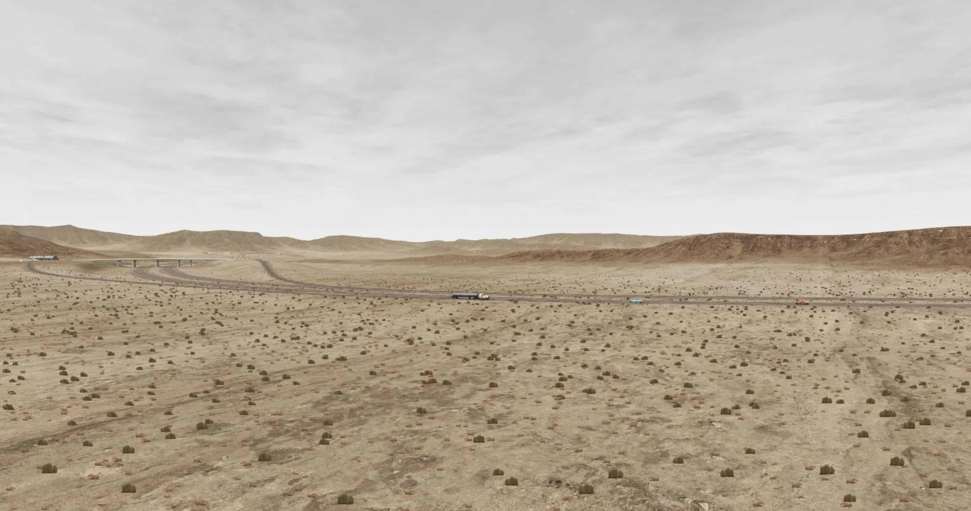 Beautiful, large desert area with off-road zones, a small town. All in the style of the wild west.
