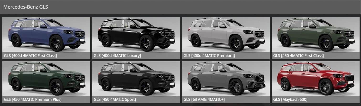 MERCEDES GLS FIXED 0.29.x BeamNG Mods | 16 Jul, 2024 MERCEDES GLS FIXED 0.29.x I fixed the Sound while starting the Engine and the missing textures error for the head- and taillights. Author: Quwevar This content was uploaded by website visitors. If you notice any mistake, please let us know.