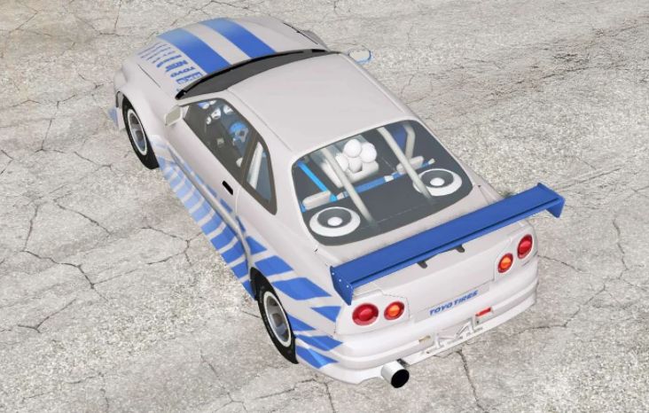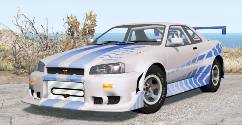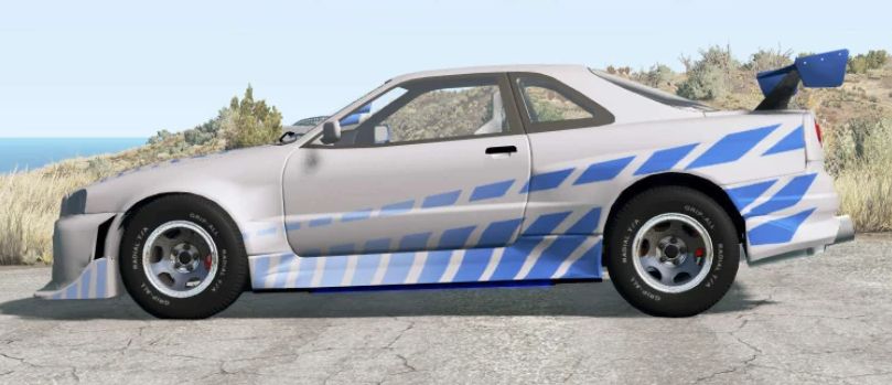 Nissan Skyline for BeamNG.drive. The modification adds a model of sports coupe.