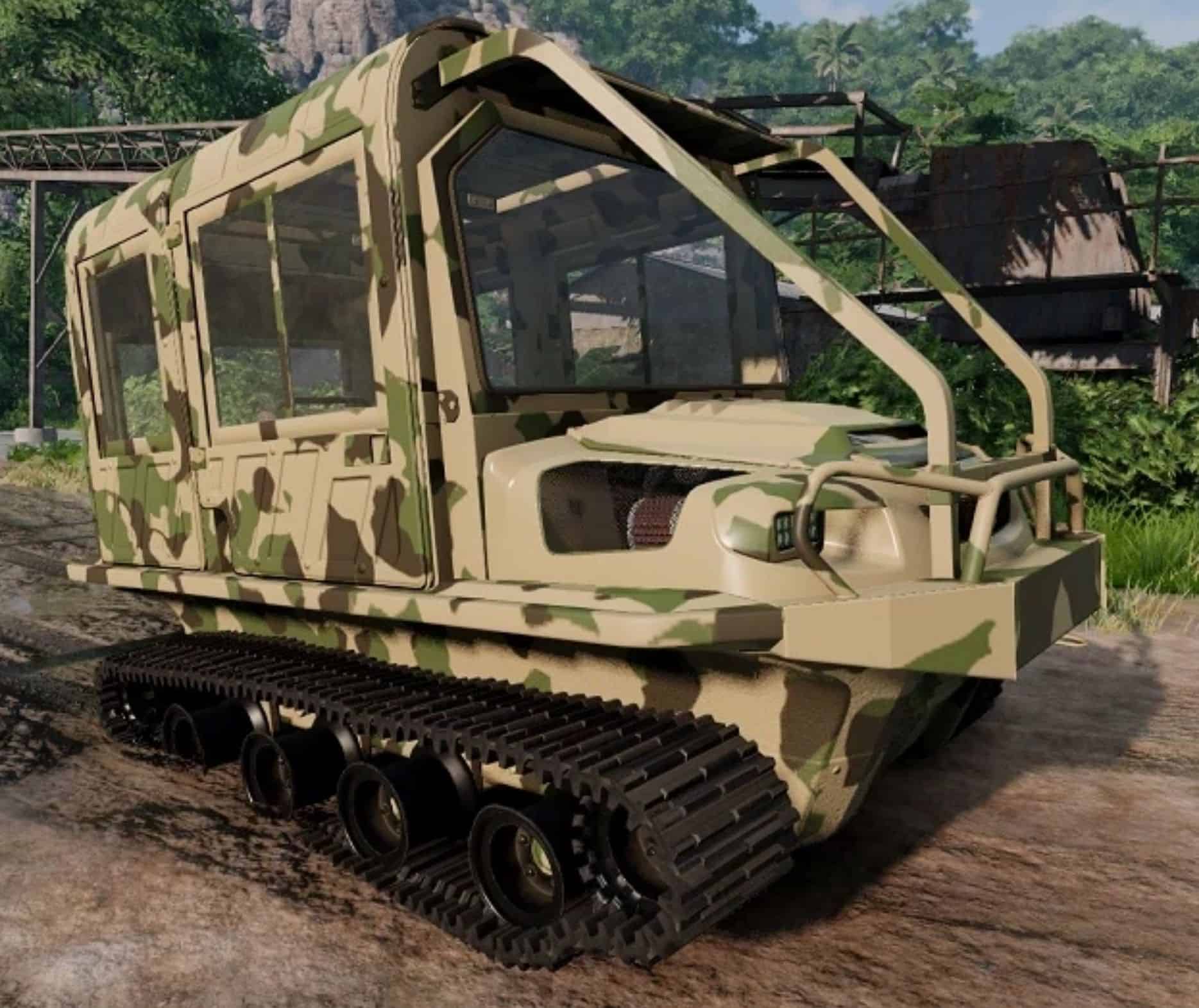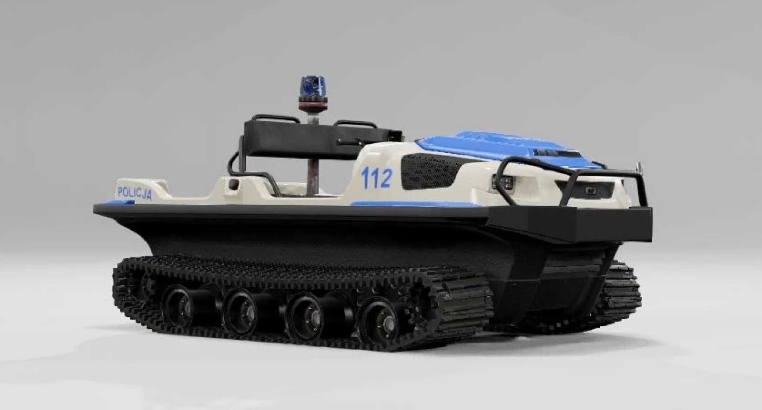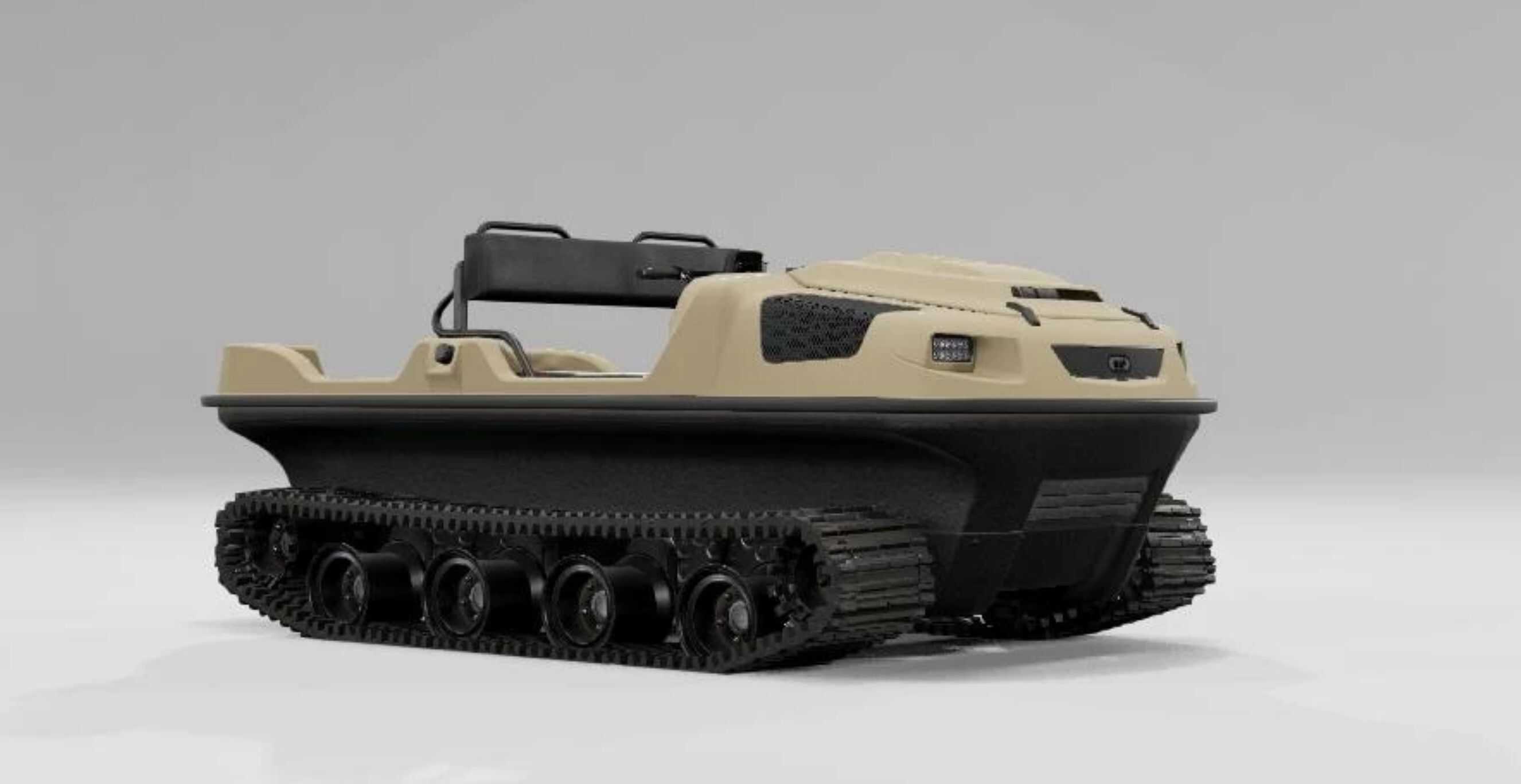 Tracked Wydra FPU in three configurations. Increased cross-country ability, improved turning speed, increased speed on the water.