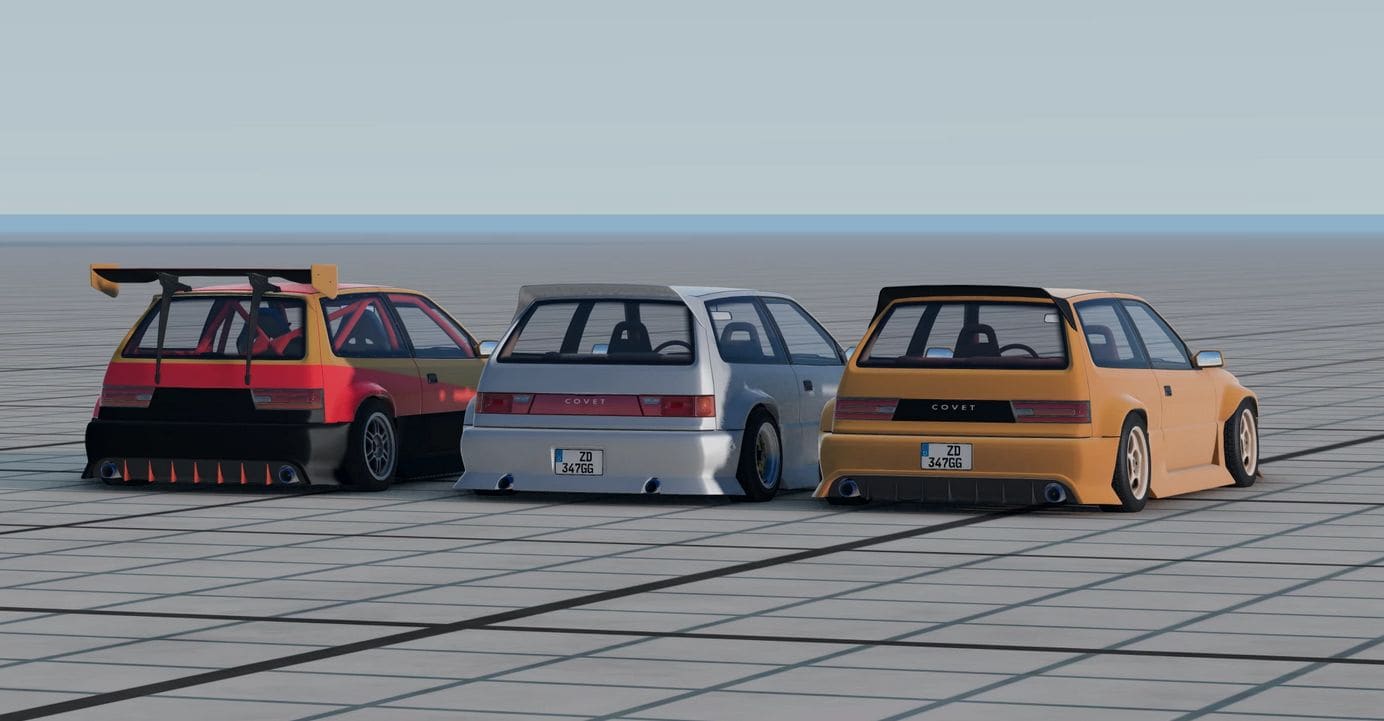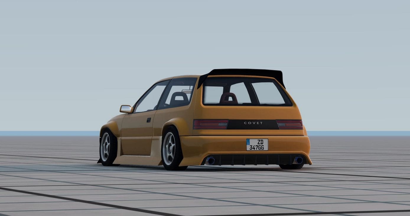 The Type-F Widebodykit for the Ibishu Covet was first introduced in 1989 and became the most famouse bodykit for the Covet. The kit also featured a racing front bumper and a racing spoiler. The instalation of the kit was simple except the rear quarterpanles which had to be modified. In 2019 modern head- and taillights were introduced.